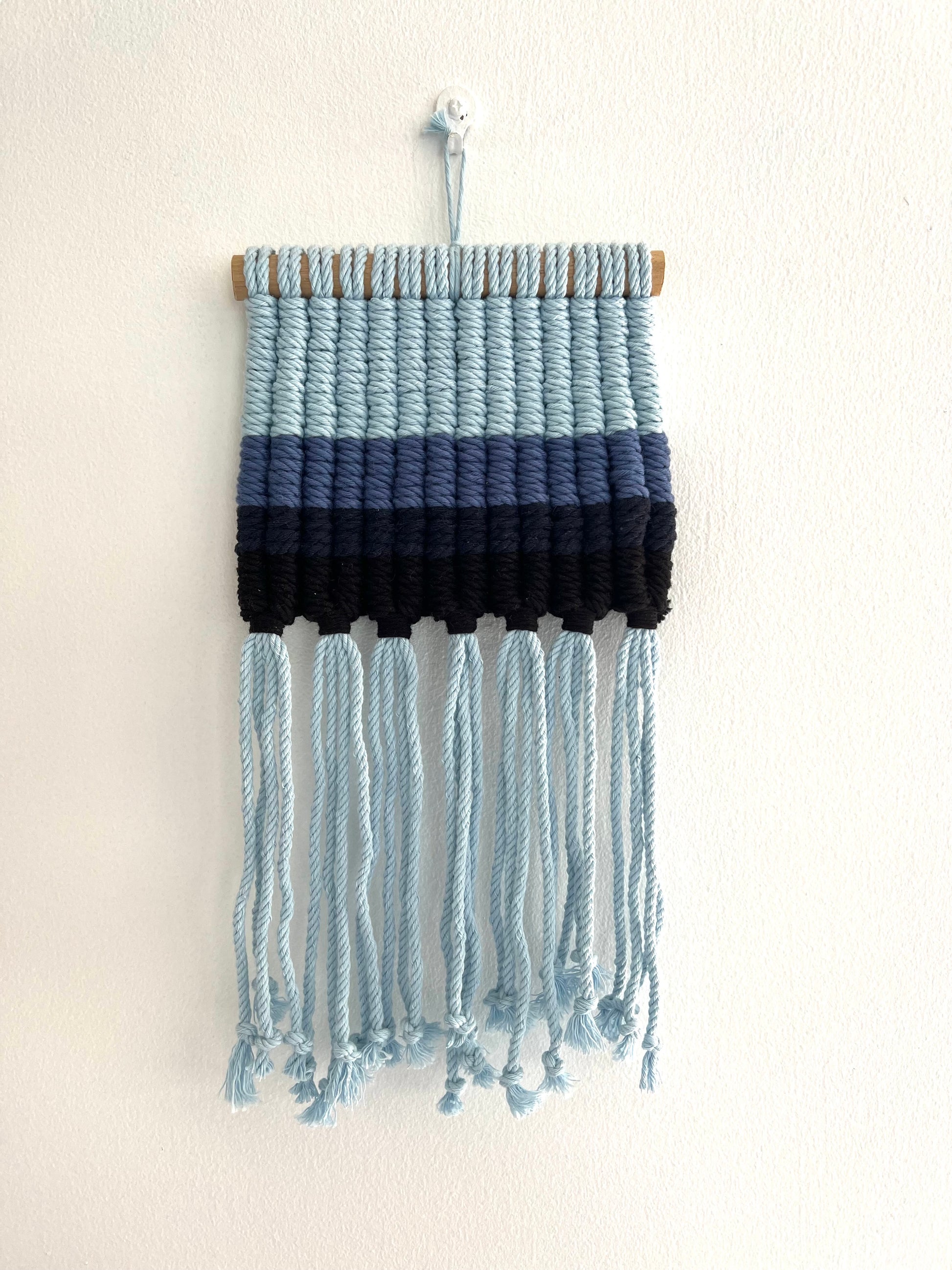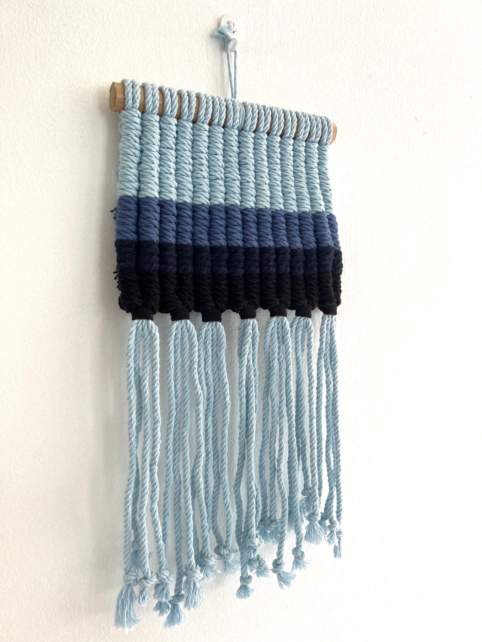 Handmade using 4strand twisted Macramé Rope and Wooden Dowel.
