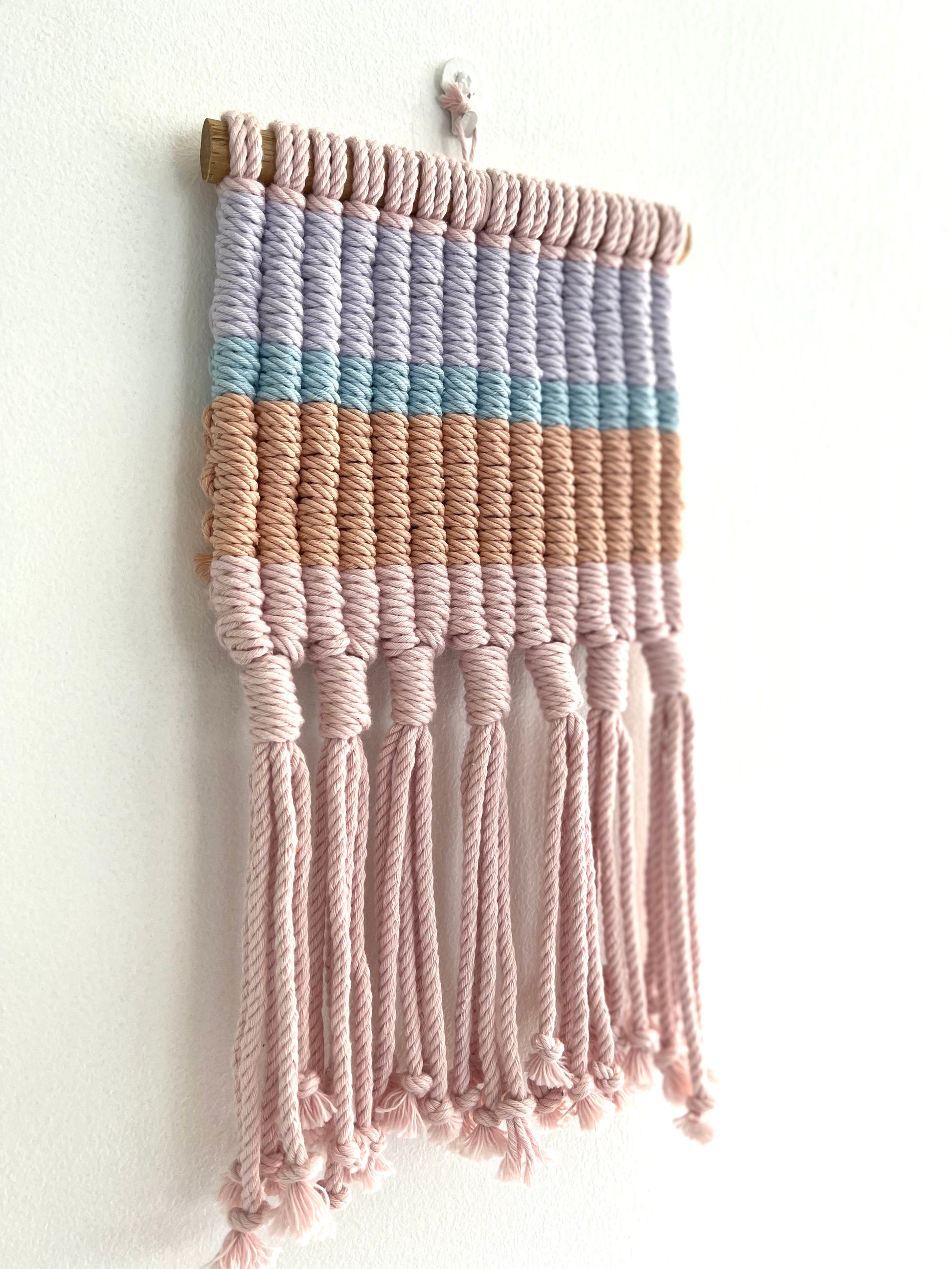 Handmade using 4strand twisted Macramé Rope and Wooden Dowel.
