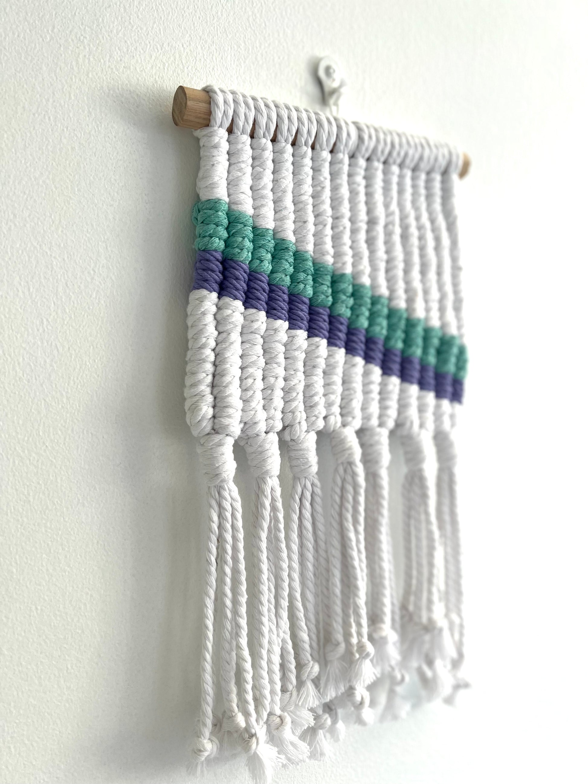 Handmade using 4strand twisted Macramé Rope and Wooden Dowel.