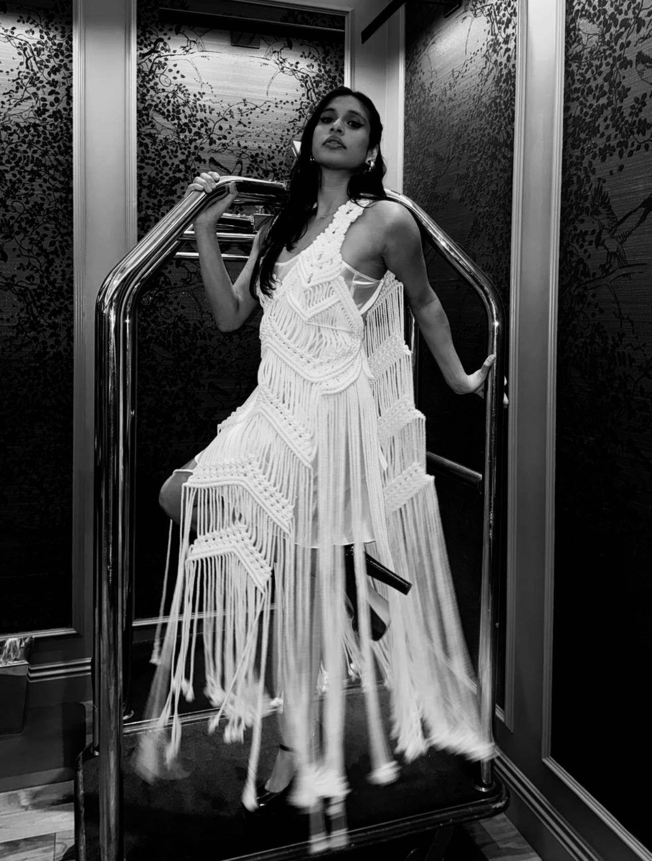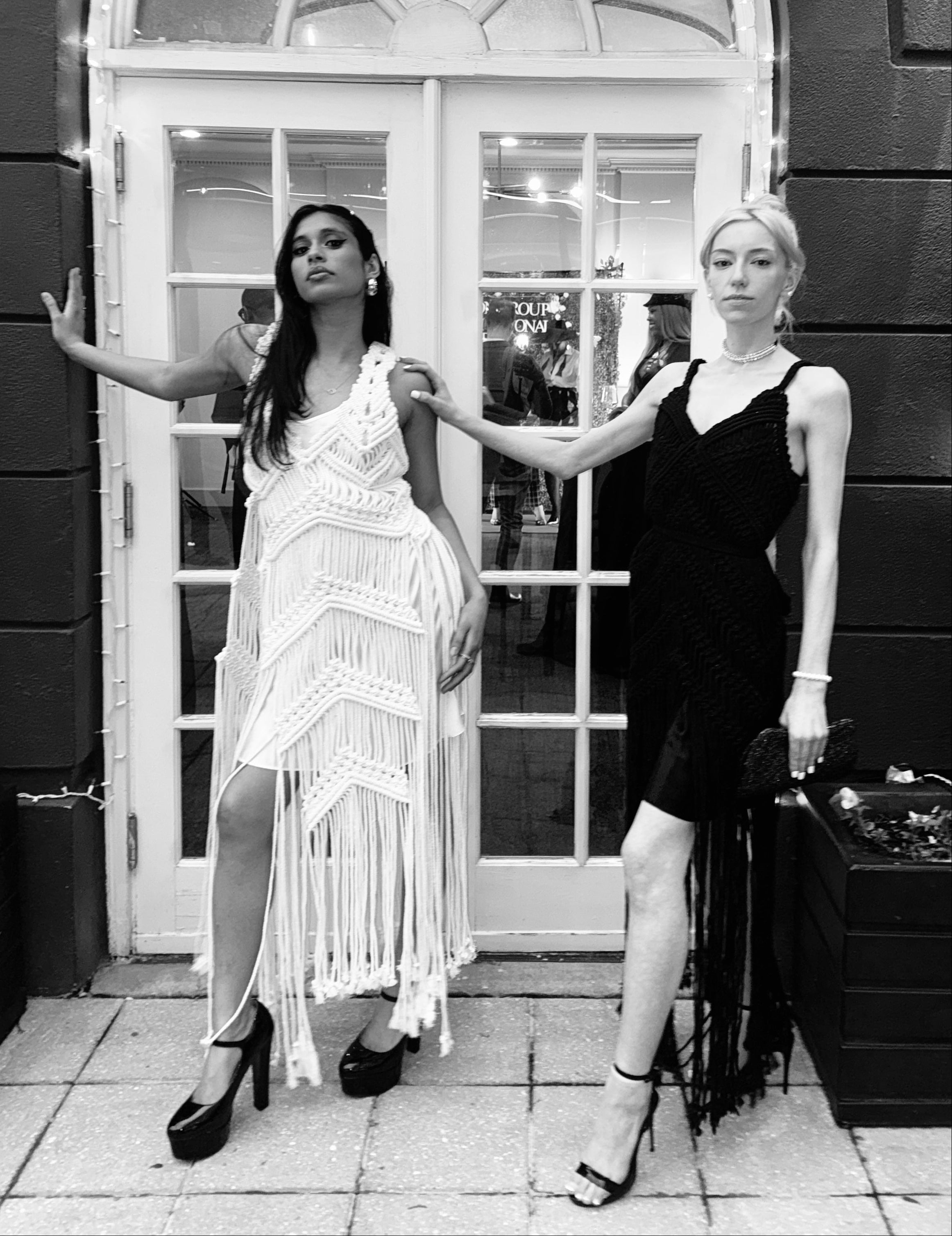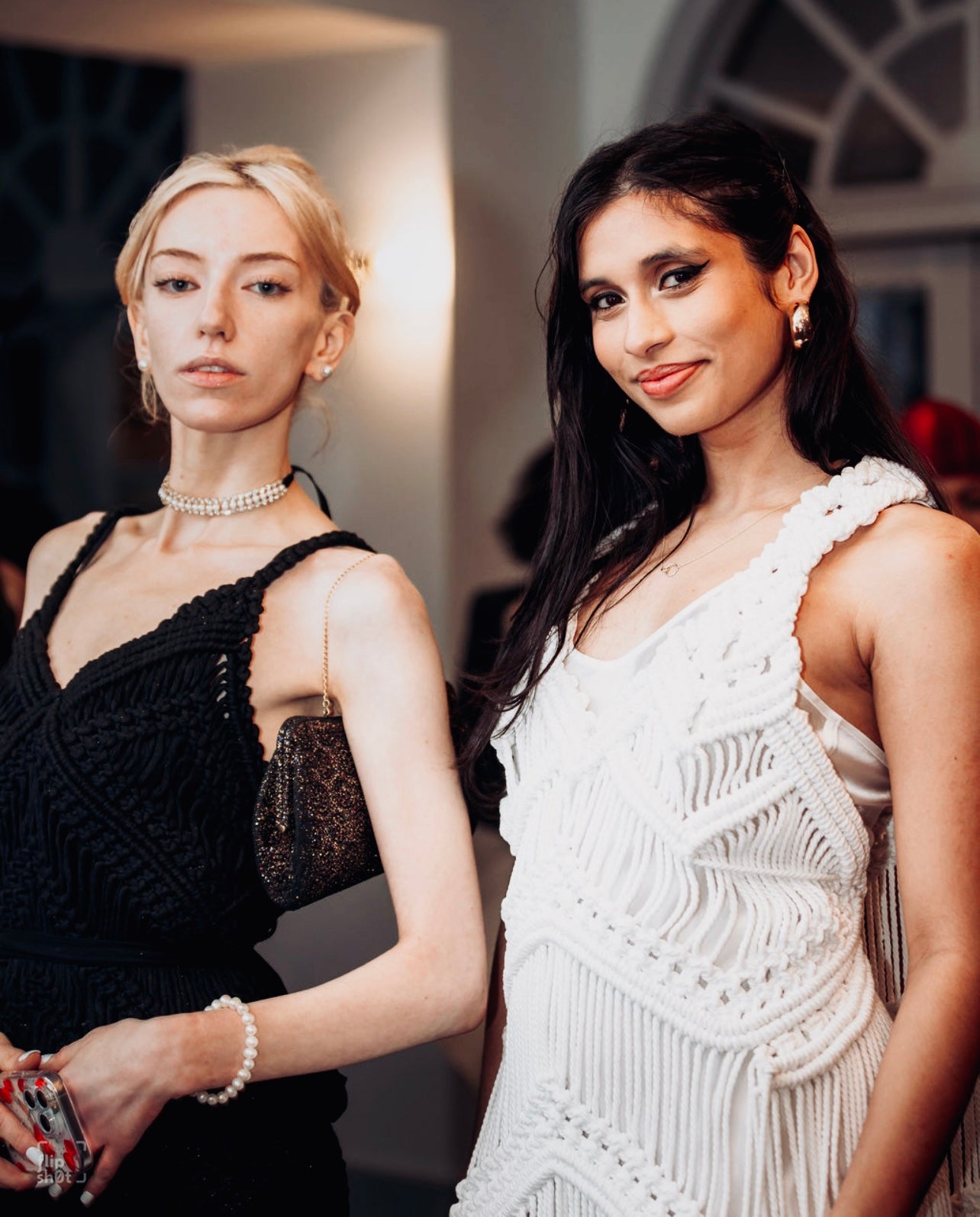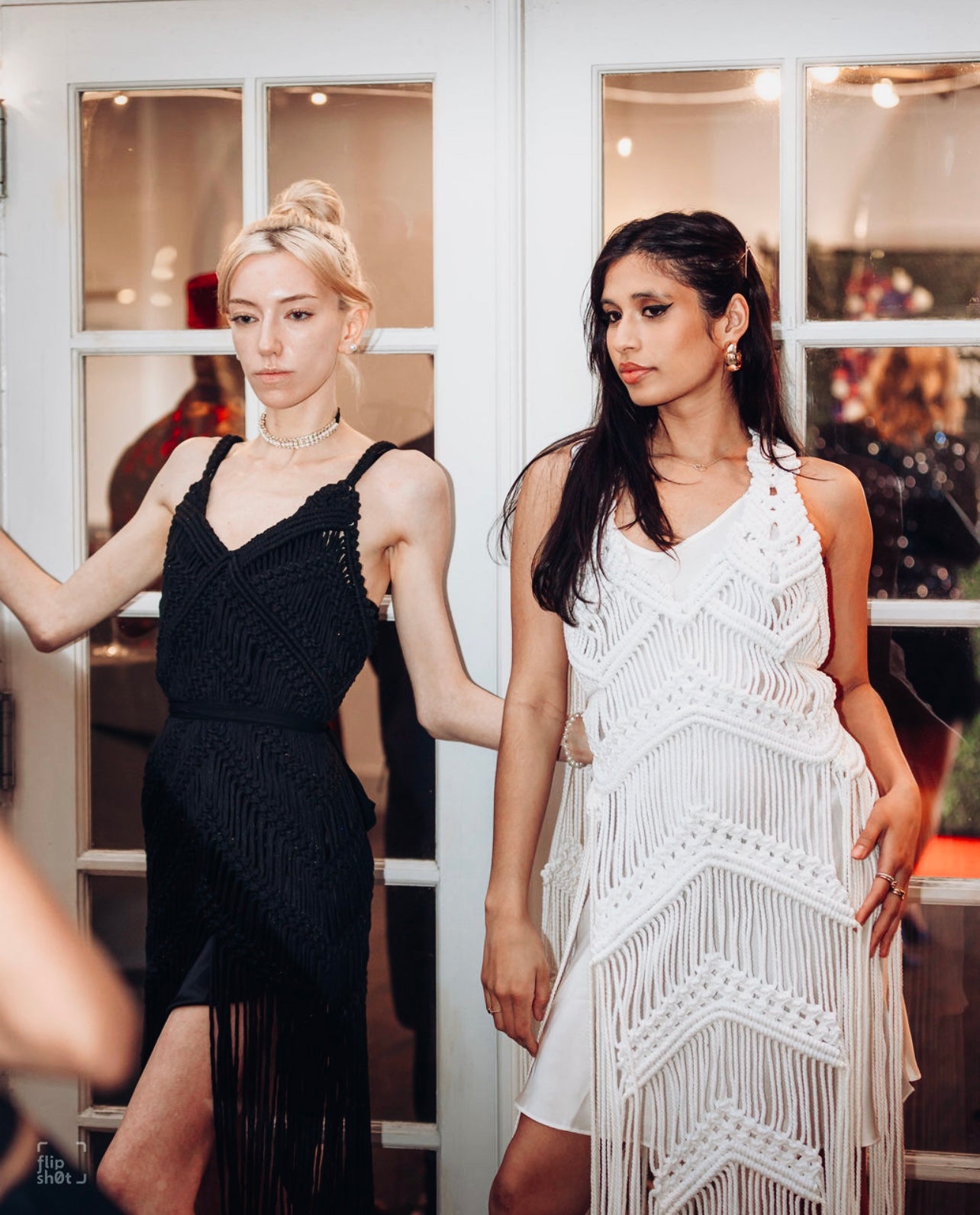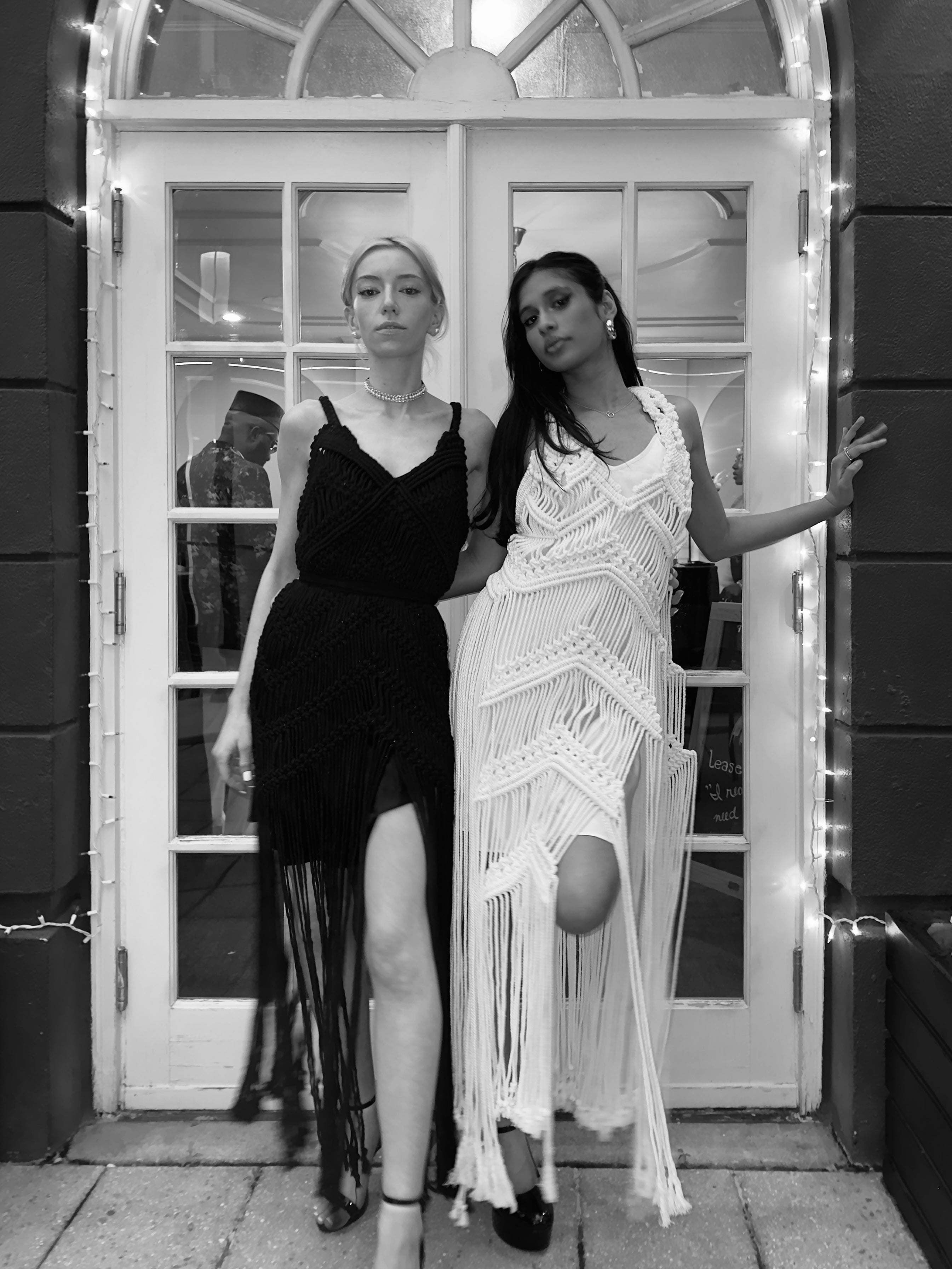 Both pieces are handcrafted using sustainable recycled cotton cord, reinforcing the commitment to responsible material use while transforming architectural form into wearable structure.