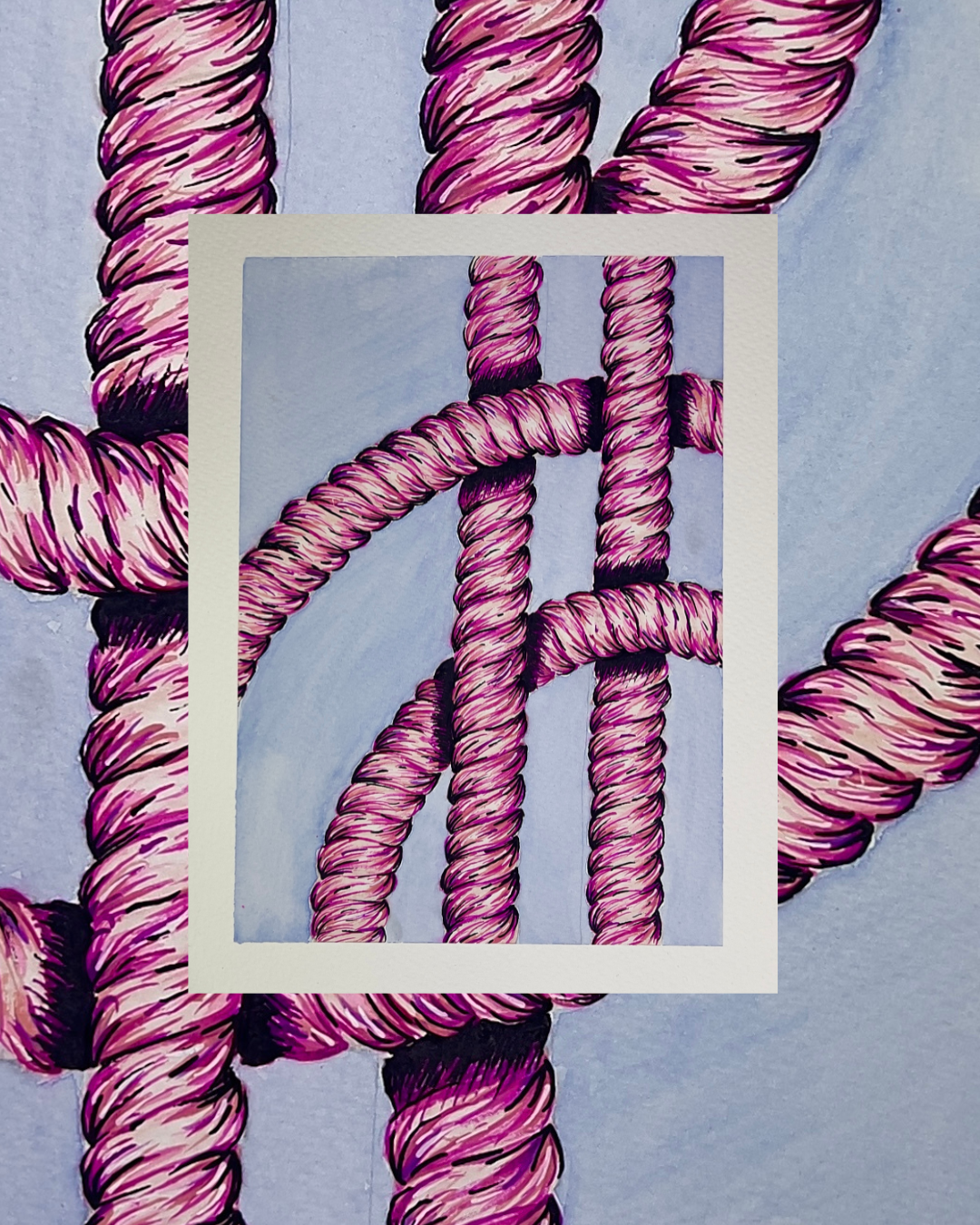 Series - Crosscurrents is a six piece exploration of intersecting forces. Each artwork presents ropes crossing and overlapping, weaving over one another capturing moments of convergence and divergence. The series reflects the unpredictable paths we travel, the relationships we form and the encounters that can alter our direction.