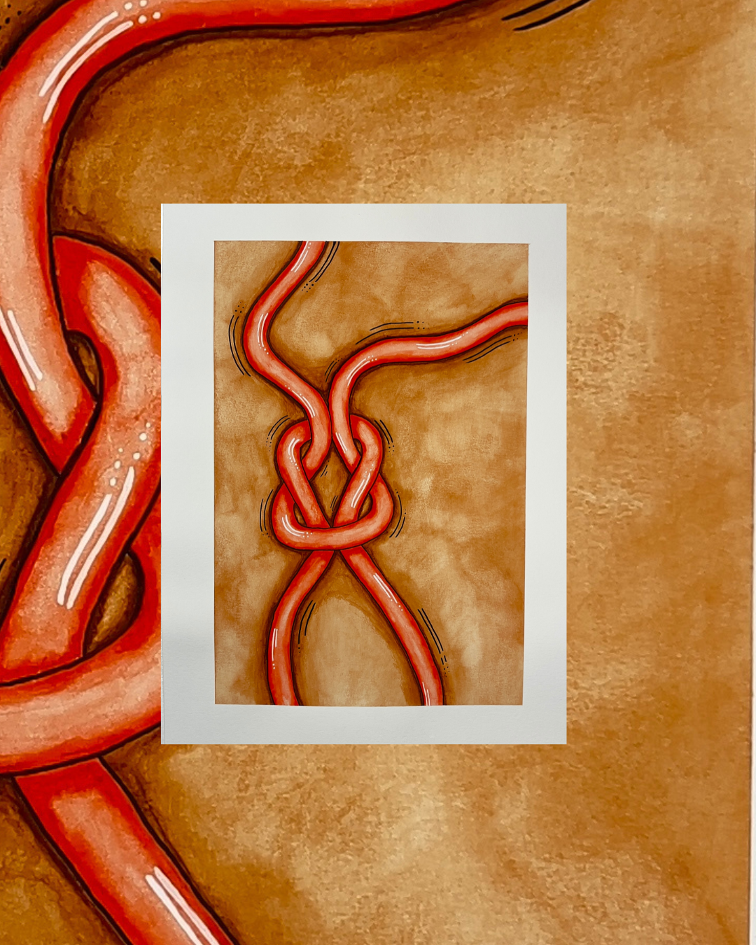 Description - 'Anxiety' reflects the restless and looping nature of unease. The knots twist and wrap upon themselves, forming patterns that appear both ordered and chaotic - mirroring the constant cycle of overthinking and tension within the mind.