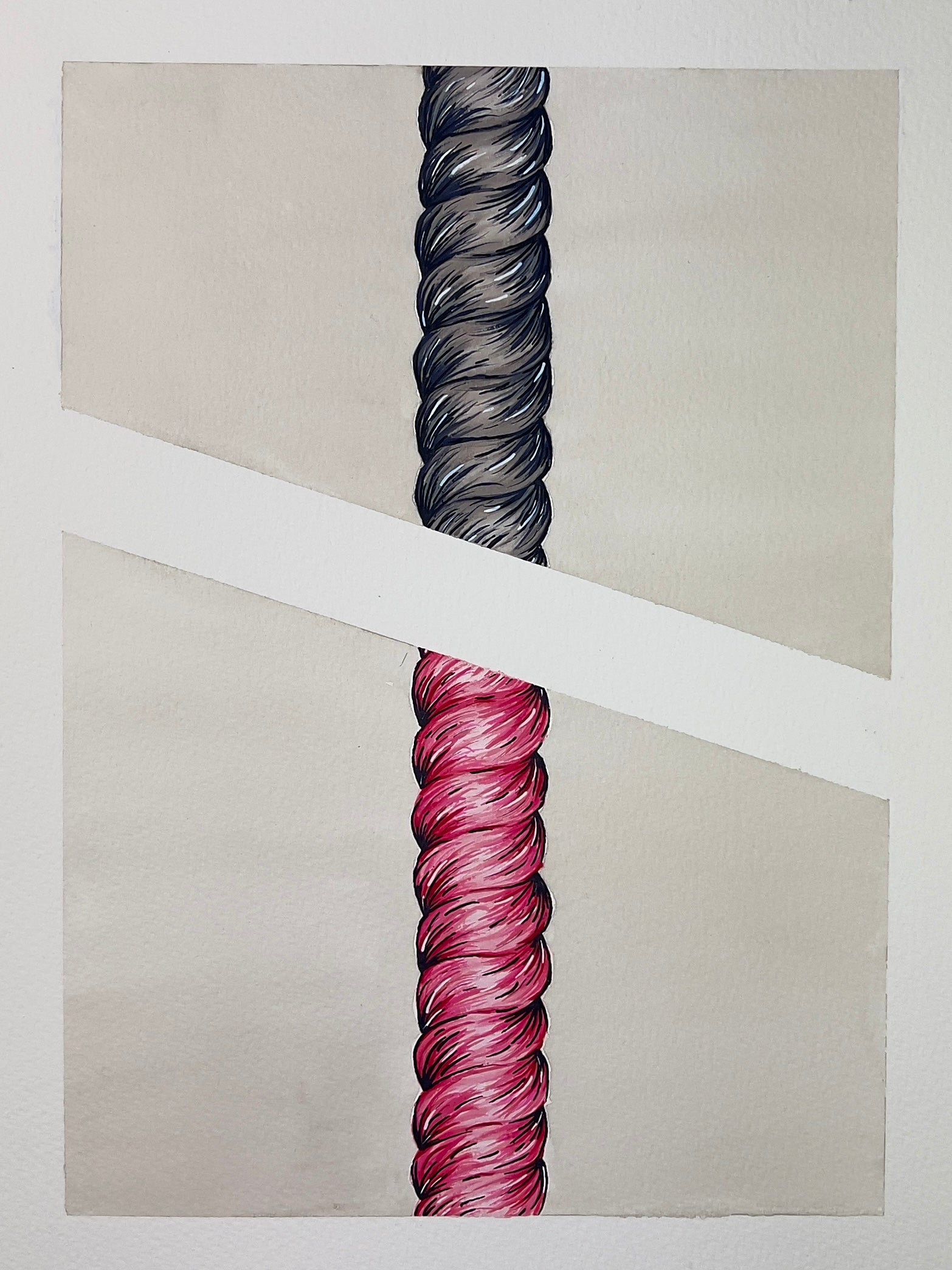 Series - 'Tied Narratives' explores the stories we accumulate through life - the moments, connections and tensions that shape who we are. Each knot becomes a metaphor of experience: sometimes tight and tangled, other times open and fluid. The ropes trace narratives of memory and emotion, capturing how our lives intertwine, unravel or re-form overtime. Through this series the act of tying becomes language - a way to translate the complexity of human experience into material form.